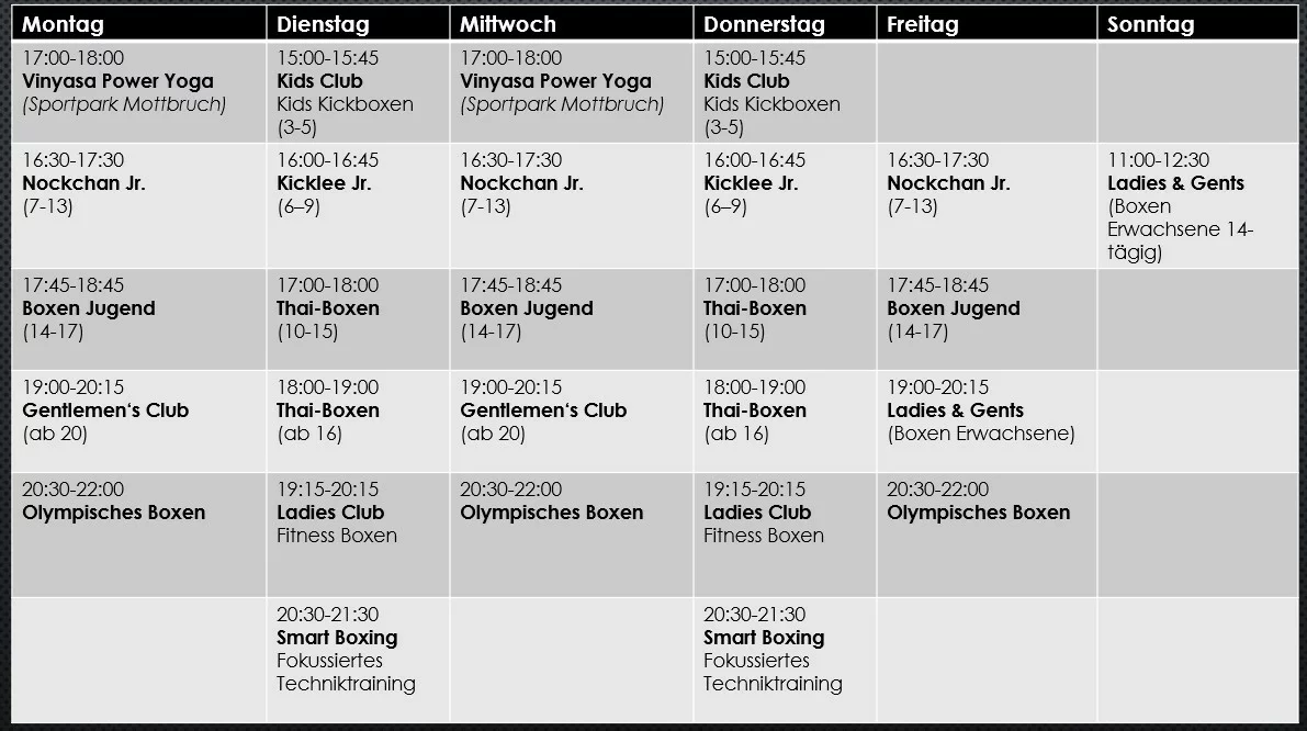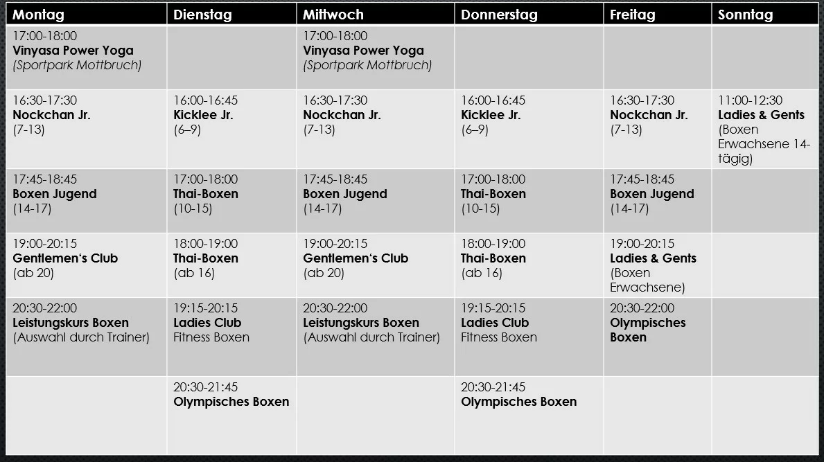 Wir bieten ein breites Spektrum an Trainingsmöglichkeiten: Fitnessboxen, Wettkampfboxen, oder auch nur Boxen aus Begeisterung für den Sport, bei uns bekommt Ihr alles. Zusammen trainieren, zusammen Fortschritte erzielen, gegenseitig motivieren und respektieren, das sind die Elemente, die uns begeistern und diese wollen wir an euch weitergeben.